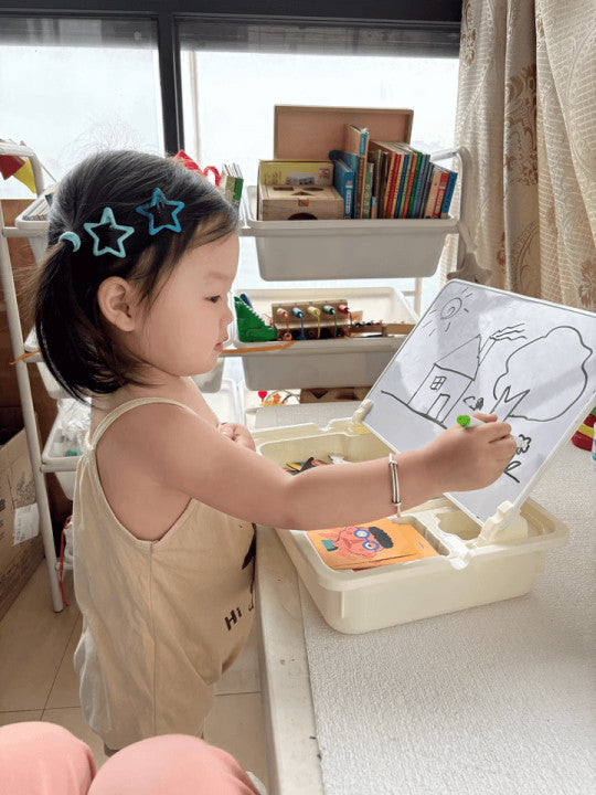¡Un juego educativo muy bonito! Combina creatividad, dibujo y resolución de problemas en un solo kit compacto