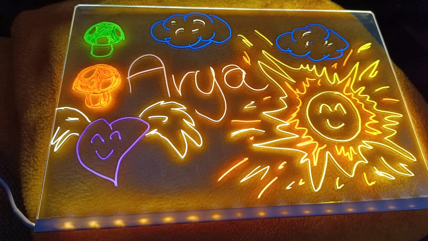La superficie luminosa transforma cada trazo en arte brillante. ¡Ideal para estimular la creatividad y la coordinación de los niños!